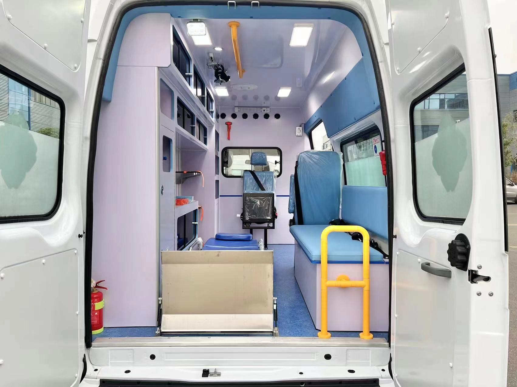 รถพยาบาล Fuxingding Ambulance PRO Long Axle รุ่นใหม่ใช้ Ford New Generation Transit PRO Long Shaft Center Top (ดัดแปลงรุ่น MT รถรุ่นนี้ใช้เครื่องยนต์ดีเซล Ford PUMA 2.198L ที่มีความเร็วสูงสุด 145 กม./ชม. พร้อมระบบ ABS+EBD+ ของ Bosch ระบบ ESP สามารถตรวจจับและวิเคราะห์สภาพถนนและปรับทิศทางการขับขี่ได้อย่างมีเหตุผล รถมีรูปลักษณ์ใหม่ การออกแบบพื้นที่ที่เหมาะสม และการกำหนดค่าที่หลากหลาย จากโรงพยาบาลใหญ่ ๆ) รถทั้งคันใช้เทคโนโลยีการดัดแปลงรถทางการแพทย์ชั้นนำในประเทศ เช่น ระบบรถพยาบาล ระบบเตือนภัย ระบบไฟฟ้า ฯลฯ ส่วนใหญ่ใช้สำหรับงานด้านสุขภาพและการวางแผนครอบครัวทุกระดับ โรงพยาบาล ขนาดกลาง/ใหญ่ และ ศูนย์ฉุกเฉิน ในทุกระดับเพื่อช่วยเหลือและเฝ้าระวังผู้บาดเจ็บและเจ็บป่วย
